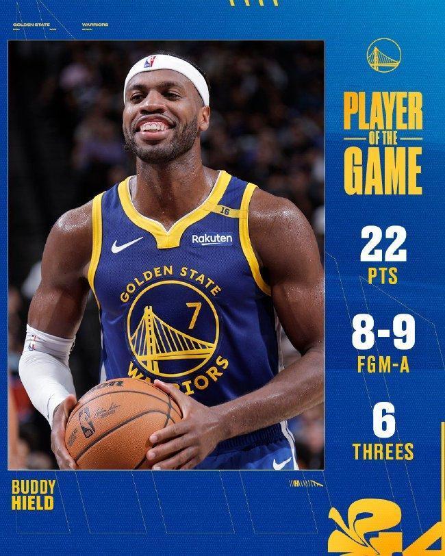 骁雄:希尔德22分3篮板、库明加16分、梅尔顿16分5篮板3助攻、库里13分、格林10分5助攻、穆迪9分3助攻2盖帽、波杰姆斯基8分4篮板8助攻、李凯尔3分4篮板4助攻